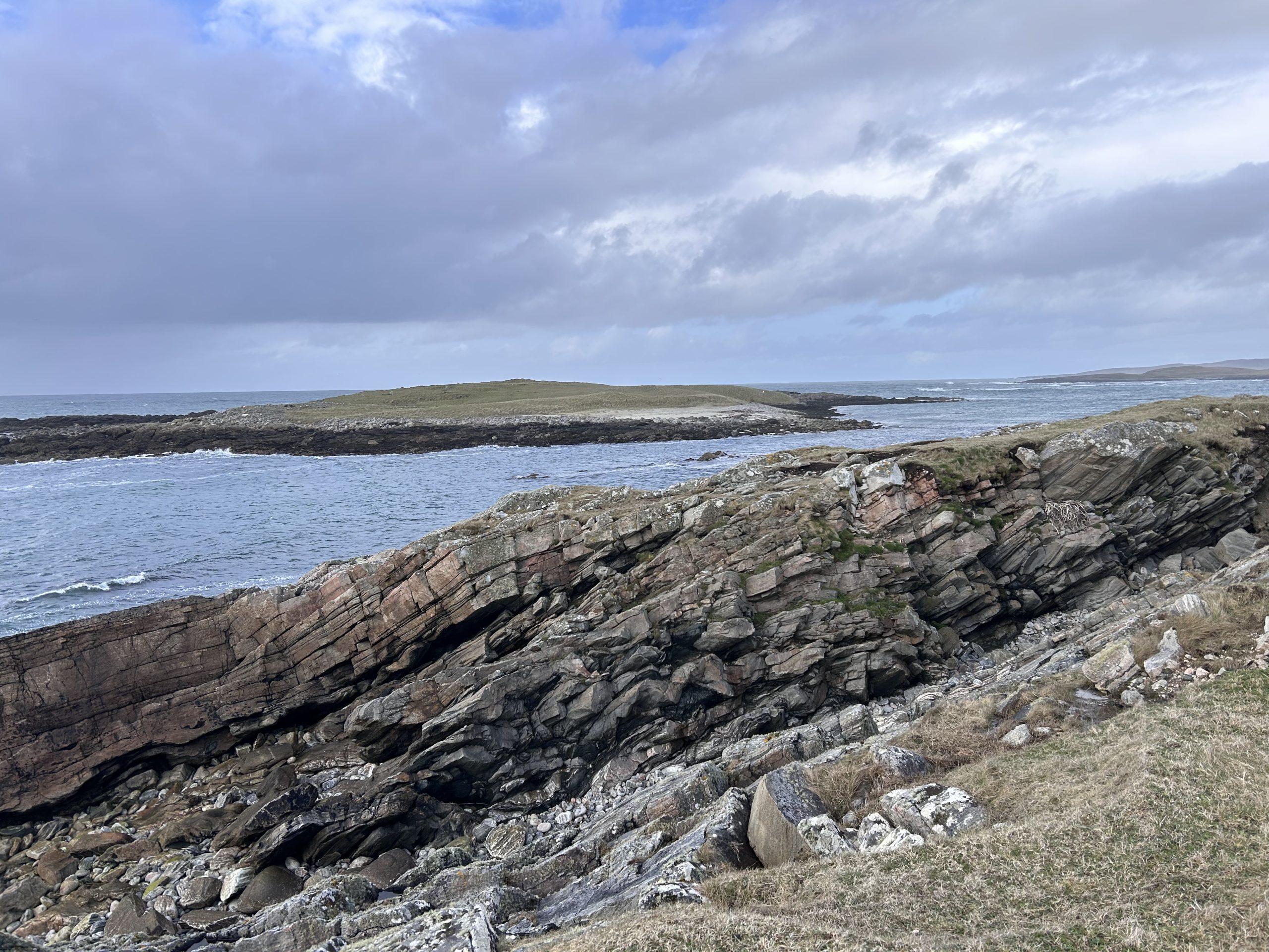 Danes je k sreči vse v najlepšem redu, še celo kot prva se zapeljeva na ogromen trajekt, ki je ob začetku aprila še dokaj prazen, turistična sezona se šele dobro začenja. »Na morje grem«, si mislim, a ne tisto domače Jadransko morje, tokrat čez ožino Little Minch, ki povezuje skupino šestih otokov po imenu Uist z otokom Skye. Zagotovo pri CalMacu ne morem okrcati njihove gostinske ponudbe in udobnih salonov, iz katerih dveurno prečkanje ožine, mine skorajda prehitro. Zame je bil cilj Lochmaddy na otoku Severni Uist, kjer sva se tokrat kot zadnja izkrcala in počasi namenila proti prenočišču. Ves promet iz trajekta se kmalu razdeli ob prvem križišču, kjer sta možnosti le dve: sever ali jug. Na sever proti otoku Harris ali na jug proti otoku Benbecula, »izgubiti se torej ne moreva«, je prvo olajšanje, ko zavijeva južno in se kot zadnja v karavani začneva peljati po izjemno lepo urejenih cestah proti prvemu postanku Barpa Langais; kameni kupoli, ki priča o naselbinah na teh odročnih krajih že v kameni dobi, ko so otoki bili še porasli z gozdom, ki ga je danes le še za vzorec.